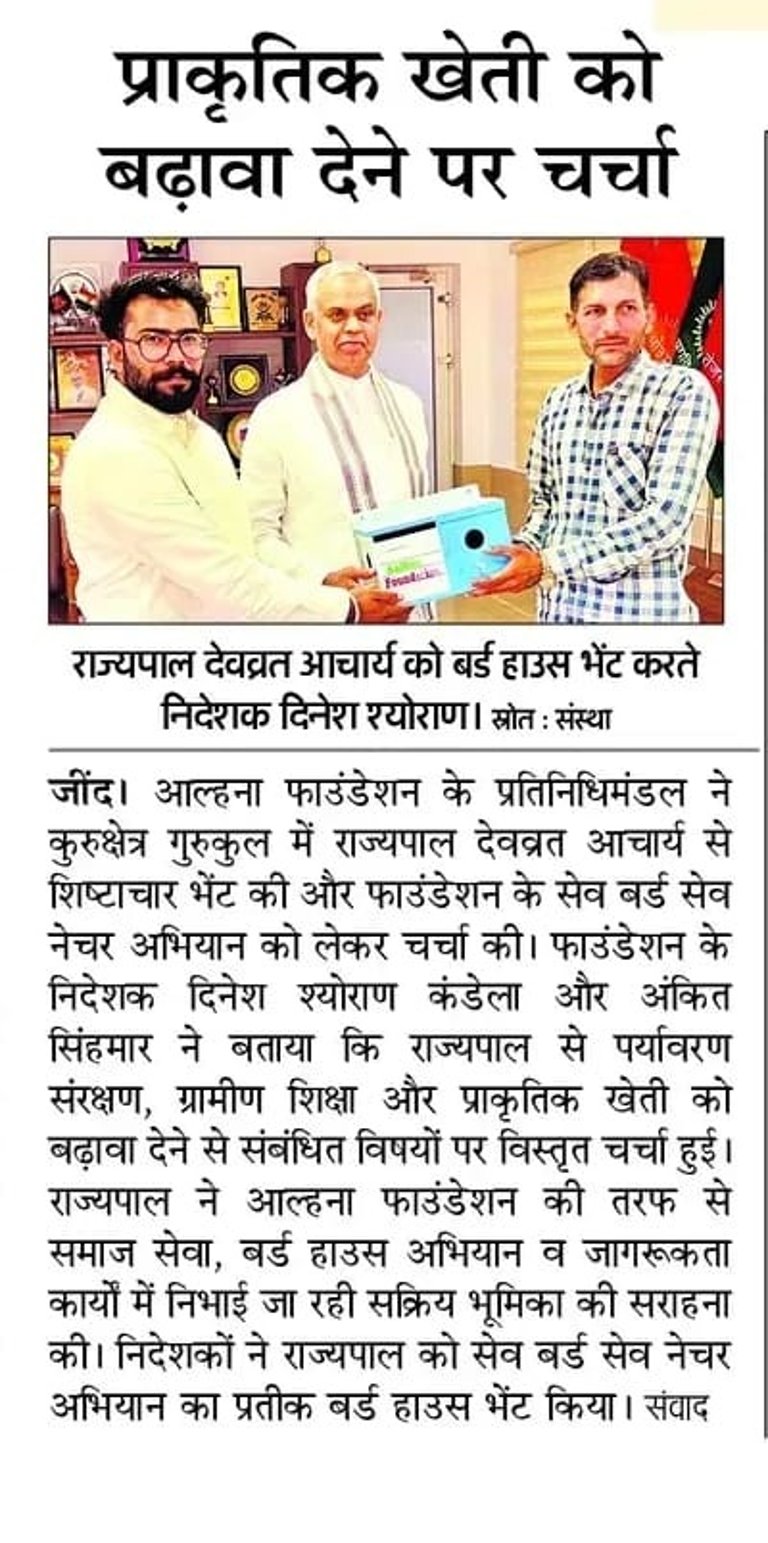 “आल्हणा फाउंडेशन का पक्षी घर अभियान हमारे पर्यावरण संरक्षण के उद्देश्यों से जुड़ा हुआ है। ये जमीनी स्तर पर किया गया प्रयास है जो हर व्यक्ति को प्रकृति से जोड़ता है।”